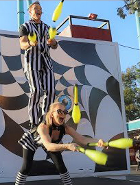 Rocco and Nova present shows from 5 to 45 minutes or entertain for hours with roving/ambient entertainment options. Juggling, aerial arobatics, fire, unicycling, stilt walking, stage shows, birthday parties. See their website.